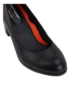 Discount βοΈ Hush Puppies The Block Heel Black Leather Heeled π Shoes π§¨