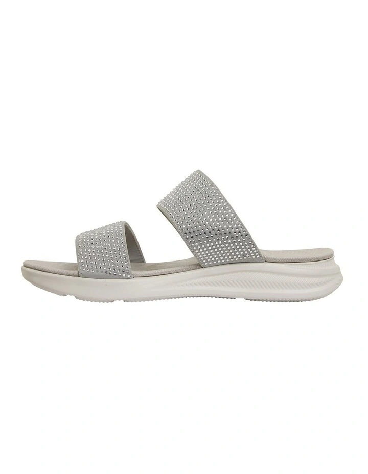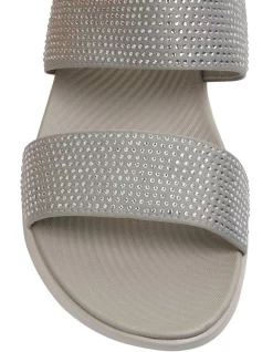 Master low key looks with high impact style wearing NOVATO. The open toe slip on design is crafted with a double foot strap adorned with co-ordinating diamantes, featuring a moulded comfortable foot bed, then rest on a slightly elevated back sole. Slip them on as a timeless accent to a vacation edit.