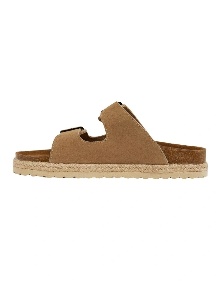 Imparting the everyday wardrobe with a laid-back appeal, CRETE is the rustic iteration of the classic summer slide. They feature a leather upper with an adjustable double strap construction, moulded footbed for optimum comfort and then set on a rope detailed sole. Slip them on with a midi skirt and graphic tee for a spirited summer edit.