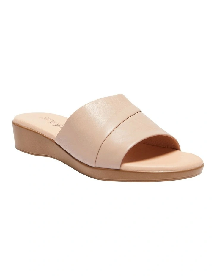 ELLEN conjures a laid-back mood with this easy slip on construction. They feature an artfully folded leather upper to an open almond toe design, then set on a cushioned insole and raised outer sole. Style them comfortably under linen pants or a printed maxi dress.