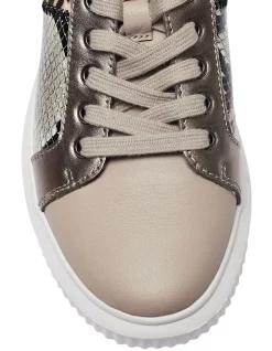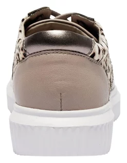 Choose TANGENT for a casual way to incorporate pattern and texture into your looks. The low top silhouette is crafted with a leather upper adorned with animal prints on the side panel to evoke eclectic glamour, platinum coloured eyelets for the laces, then set on a ribbed white sole. Pull focus to the bold silhouette by styling them with monochromatic separates.