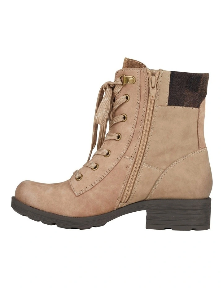 The lace-up boot Rowan has a functional zipper that lets you easily take them on and off without fussing with the laces. A flannel collar adds a touch of comfort and style.