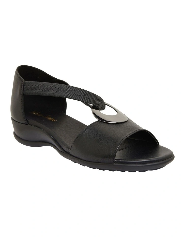 Choose CAROLINE as an enduring option for warm climes. They’re crafted using a leather heel panel and toe strap accented with a circle design across the foot vamp, then rest on a comfortable low heel. Slip them on as a timeless accent to a vacation edit.